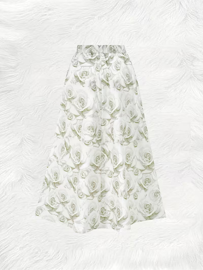 Classic White Rose Floral Women’s Long Skirt
