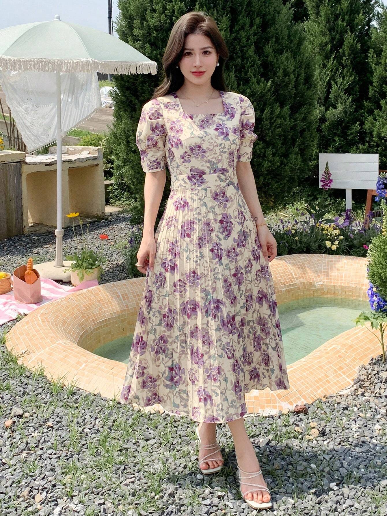 This Floral Fit & Flare Midi Dress is made from premium crepe fabric, offering a soft, lightweight, and comfortable feel. Featuring a vintage purple floral print, square neckline, and puff half sleeves, it creates a flattering and feminine silhouette. The fitted waist and flowy midi skirt make it perfect for brunches, casual outings, festive gatherings, and semi-formal occasions.