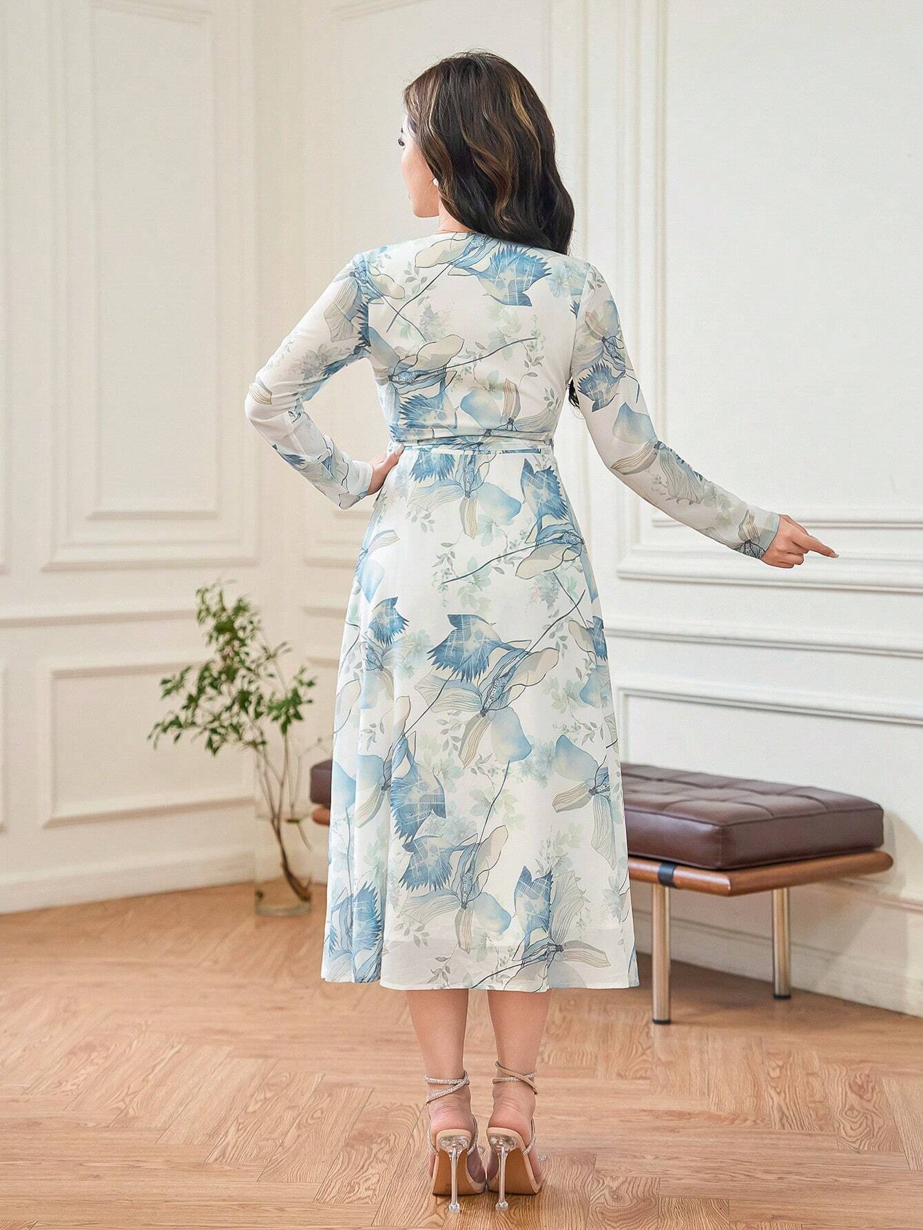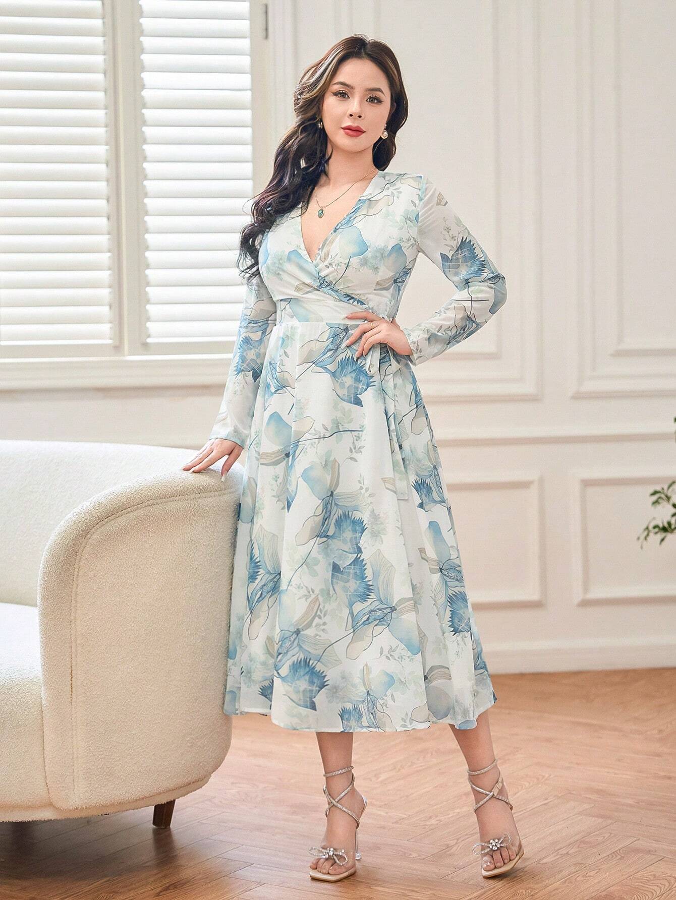 Made from premium chiffon fabric, this floral wrap dress is lightweight, soft, and comfortable to wear. It features a delicate watercolor floral print that adds a fresh and elegant look. The V-neck wrap design with a self-tie waist belt offers a flattering and adjustable fit. Full sleeves and a flowy midi-length flare enhance its graceful appeal. Perfect for casual outings, brunches, vacations, and semi-formal occasions.