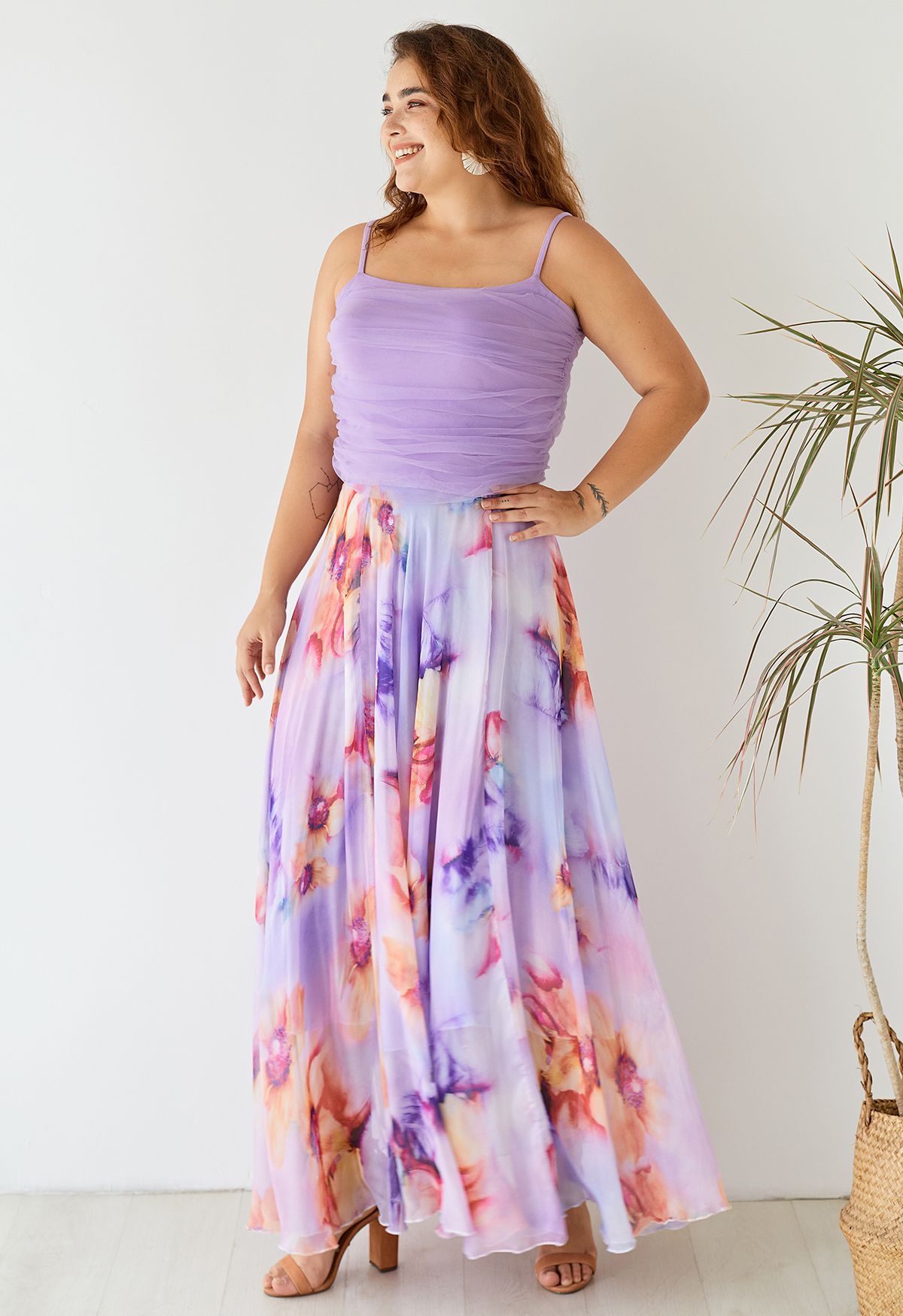 Lilac Petal Drift Flow Maxi Skirt