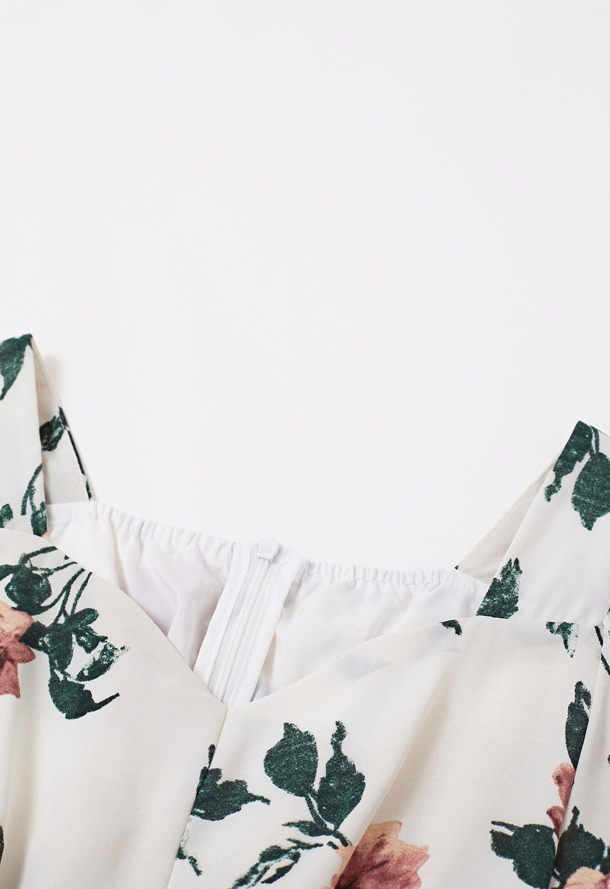 Made from lightweight printed chiffon, the fabric feels feather-soft against the skin and provides an elegant drape with subtle transparency, enhanced by an inner lining for coverage and comfort. The flowy structure makes it ideal for warm-weather wear while ensuring a polished look throughout the day.