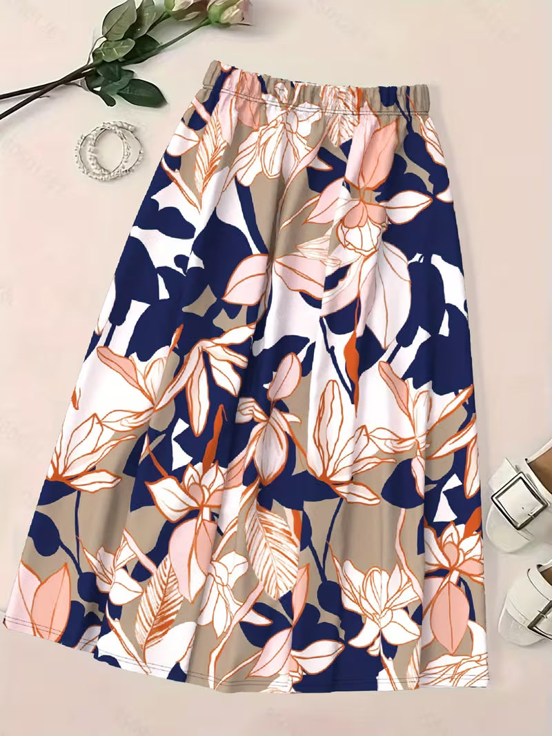 This premium rayon crepe skirt is designed to offer both comfort and effortless style. Crafted from soft and breathable fabric, it provides a smooth fall and lightweight feel, making it ideal for all-day wear. The elegant floral print in navy blue, beige, peach, and white creates a fresh and modern look. An elasticated waistband ensures a flexible and comfortable fit for every body type. Perfect for casual outings, vacations, or relaxed workdays, this skirt pairs beautifully with solid tops, blouses, or ethnic wear for a versatile and refined appearance.