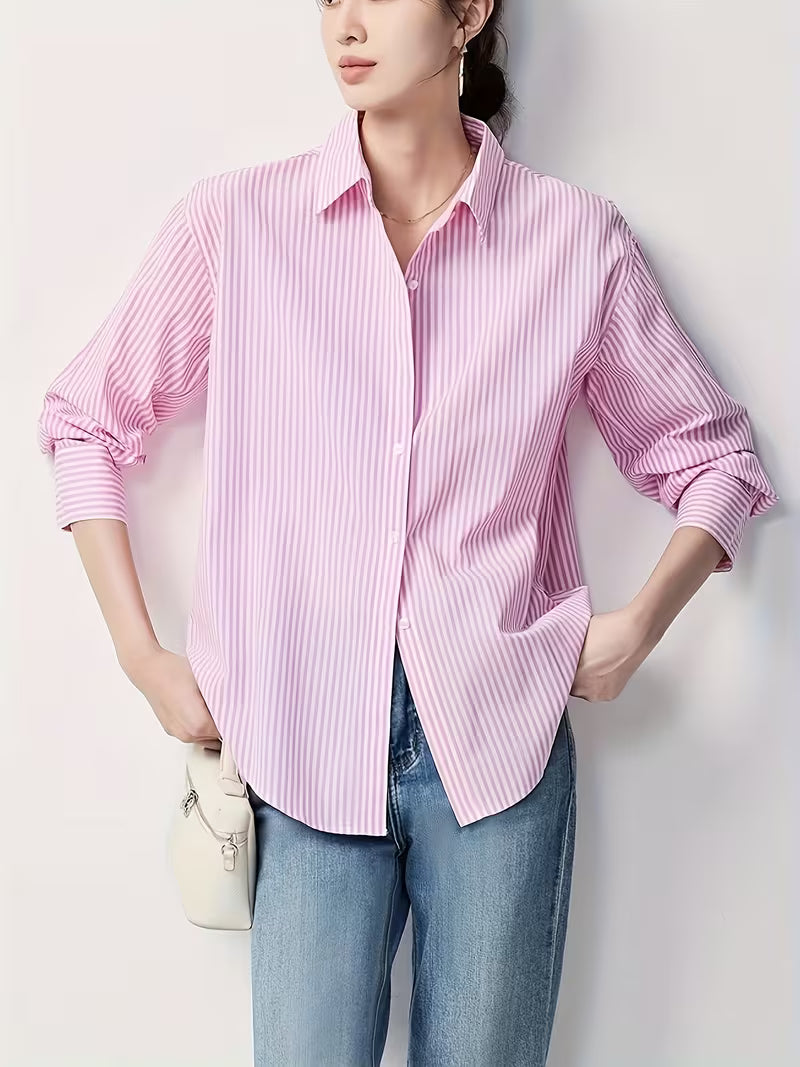 Soft Blush Pink with White Stripes Women’s Casual Cotton Shirt