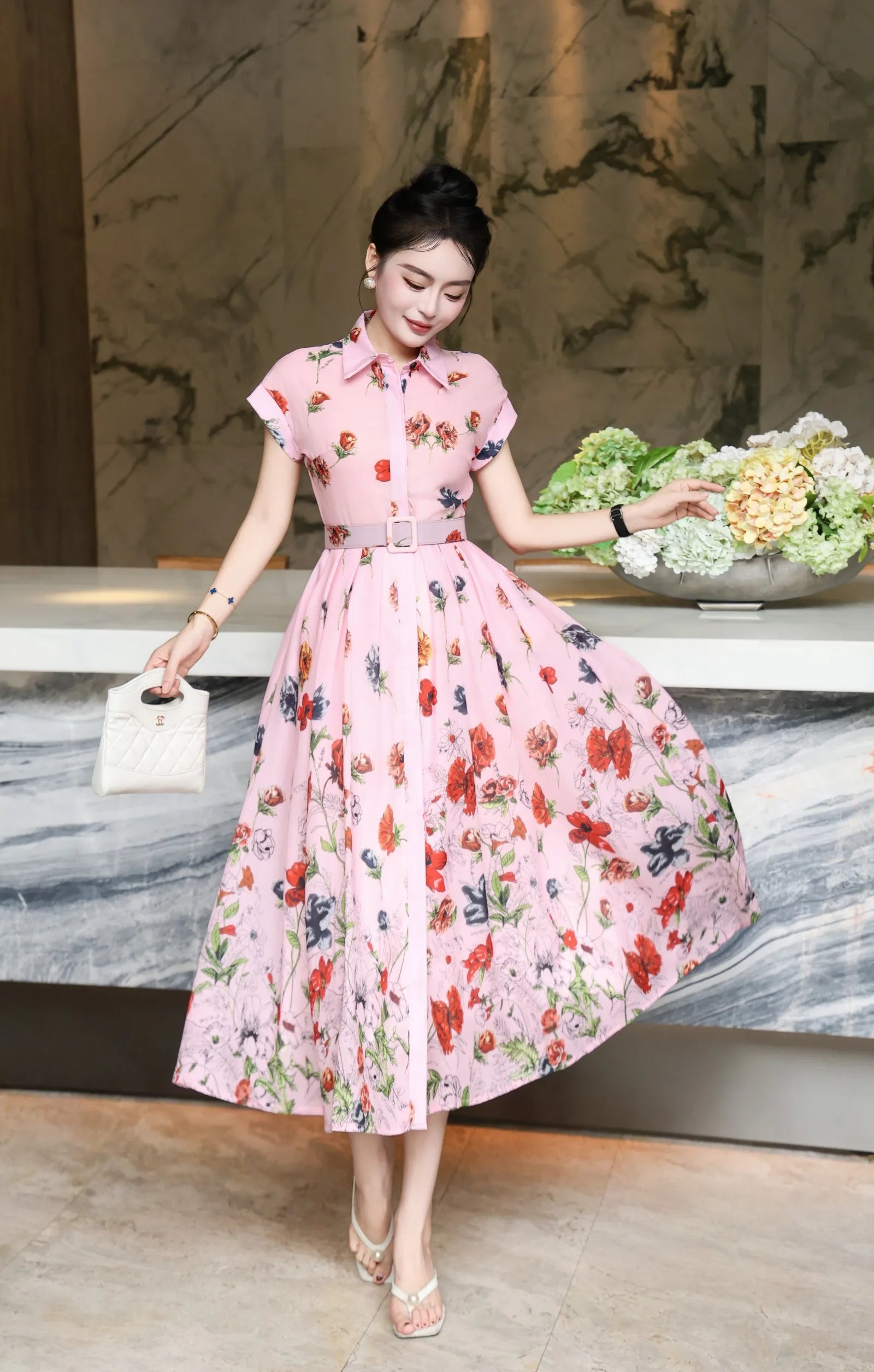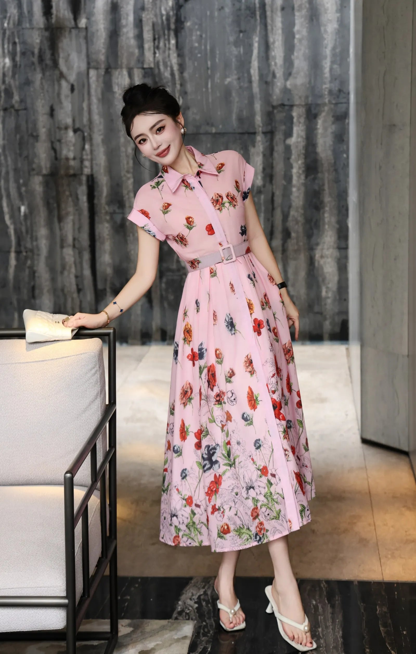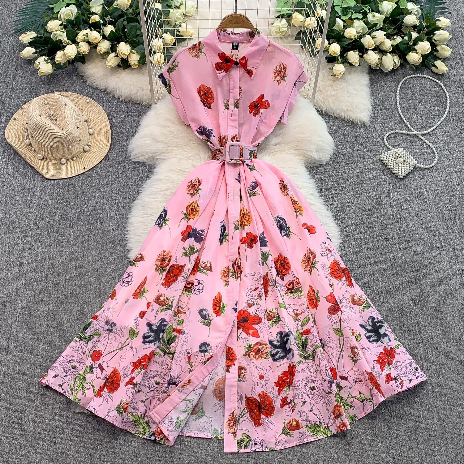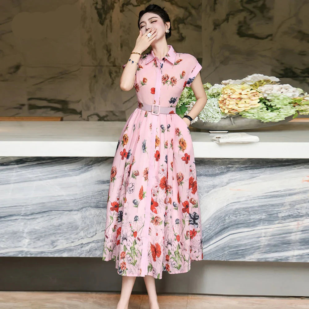 Step into effortless elegance with the Summer Reverie Retro a printed chiffon dress that blends vintage charm with modern comfort. Designed with a breezy turn-down collar and a flowing maxi length, this piece captures the spirit of retro summers while keeping you cool and chic