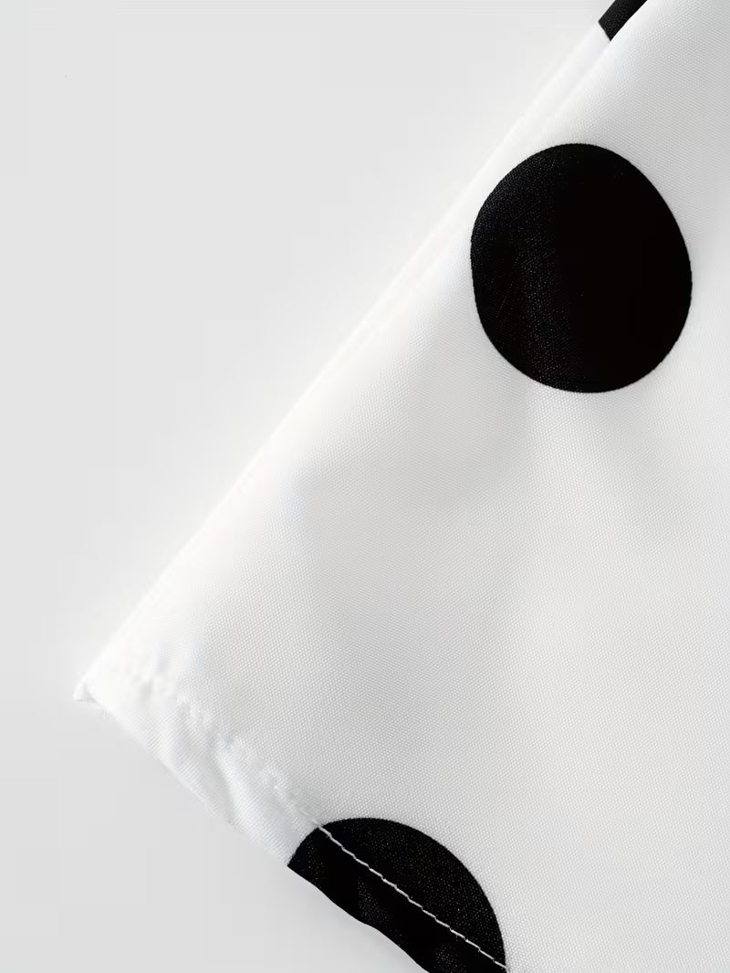Pattern: Large, scattered monochrome polka dots (circular/Dalmatian style).