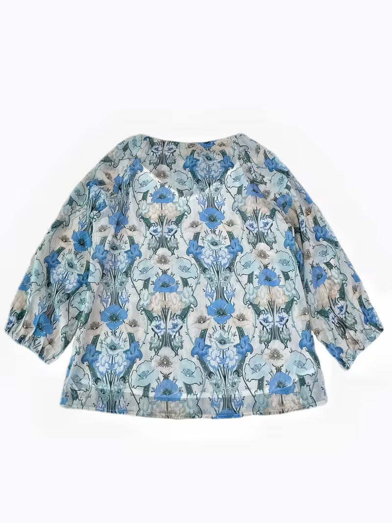 This ethereal Top features a delicate floral print in of blue, green, and beige Top